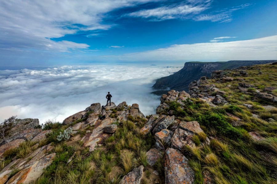 Viajamos al norte para descubrir las Pedras Negras de Pungo Andongo, gigantescos monolitos cargados de simbolismo. Caminamos entre sus formaciones rocosas, donde luces y sombras ofrecen composiciones fotográficas singulares. Este paisaje monumental, forjado por el tiempo y la memoria cultural, deja una huella profunda antes de continuar hacia Cahombo para descansar.